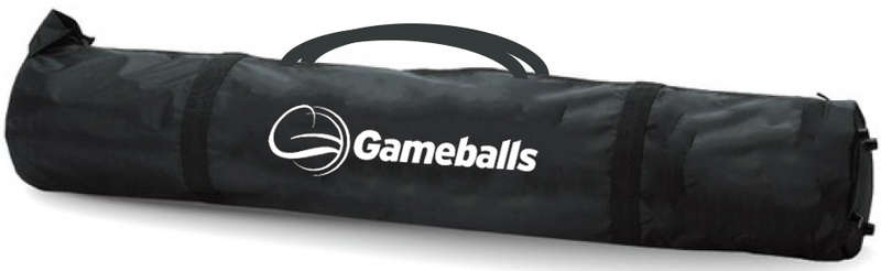 Gameballs Pro Beach Set compleet: Mobiele Beachvolleybal wedstrijd set met super sterke aluminium netpalen voor de veeleisende amateur of professional. De Gameballs Pro Beach Set wordt geleverd met super stabiele gepoederde coatte netpalen.met behulp van het speciale alminium voetstuk kan het net snel op 3 verschillende hoogtes ingesteld worden (2,43 meter, 2,24 meter en 3,35 meter.