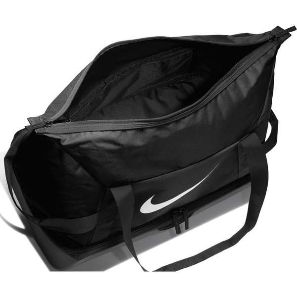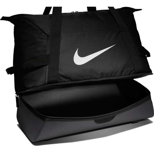 De Nike Academy Teambag sporttas is een sporttas waarin je al je sportspullen mee kunt nemen. De tas heeft een groot vak en een kleiner onder, allen met ritssluiting. Het ondervak is geschikt voor het meenemen van natte kleding of vuile schoenen. De sporttas heeft twee draagriemen.