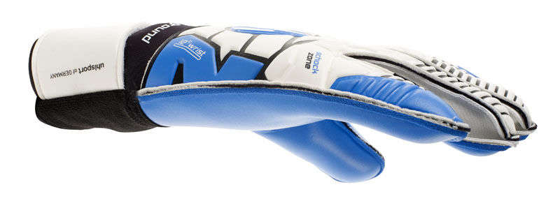 Uhlsport Handschoenen Eliminator zachte per PALM: SOFT latex in energie blauw BACKHAND: zachte EVA reliëf CUT: klassieke snit staat garant voor een maximale visgebied GLOVE BODY: elastische stof voor een uitstekende draagcomfort AFSLUITING: perifere EVA flap en een halve bandage DESIGN: unieke ELIMINATOR ontwerp < BR />