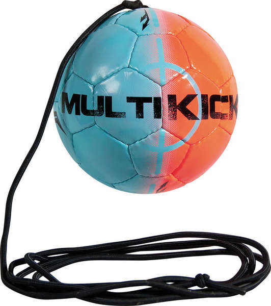 De Multikick Mini is een Mini Voetbal inclusief super elastische band. De band is in verschillende lengtes in te stellen. Ideaal voor techniek training. Verbetert de ontvangst van de bal, schiet techniek en balans. Ook geschikt voor het techniektraining bij het keepen. De bal is met de hand genaaid. De Multikick Mini is gemaakt van PVC, glanzend materiaal. Omtrek: 47 cm